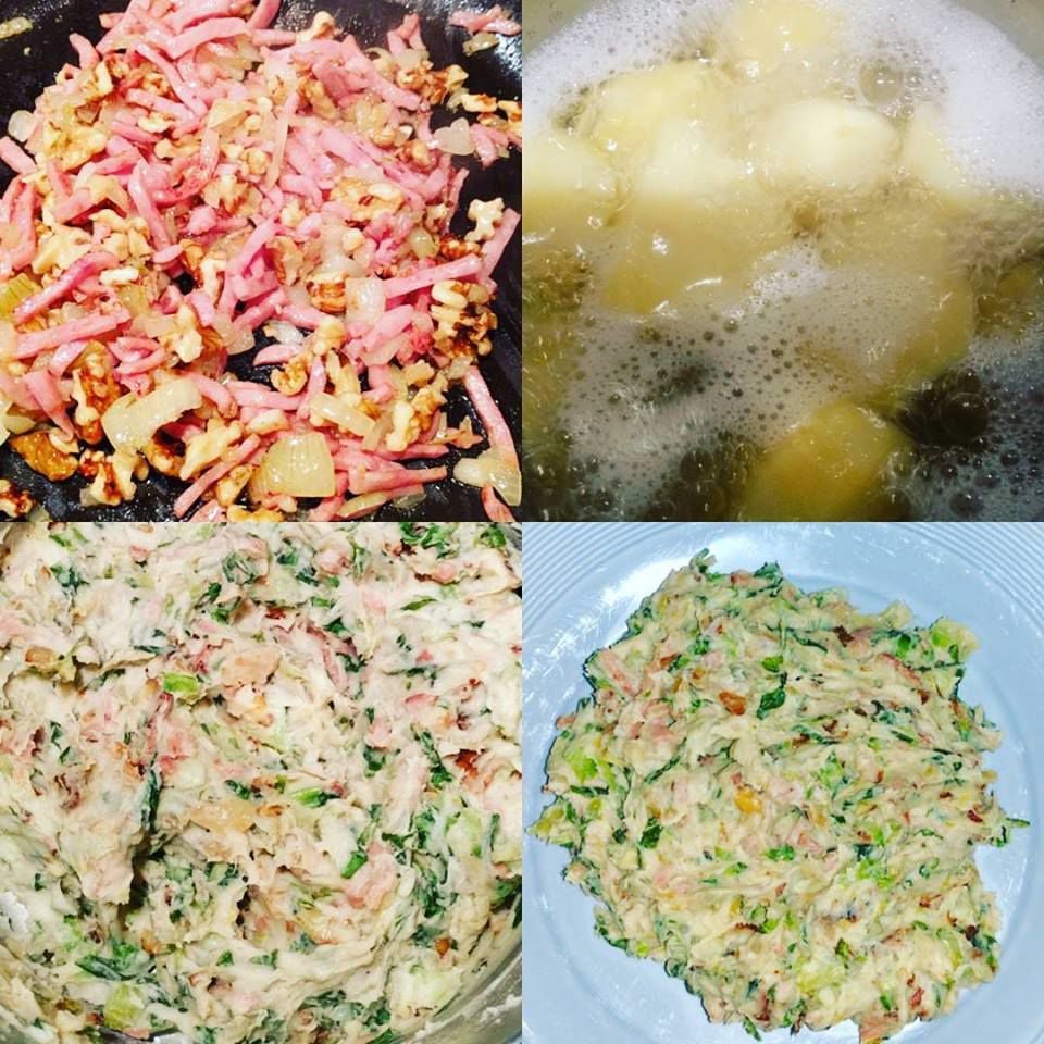 Fruit de ui en knoflook in een scheutje olijfolie glazig. Voeg de hamblokjes en de walnoten toe bak deze krokant.