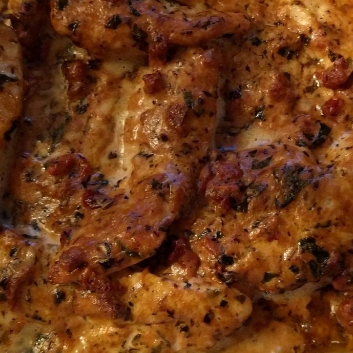 Doe de kipfilet in een ovenschaal, schenk de saus eroverheen en zet dit 20 minuten in de oven.